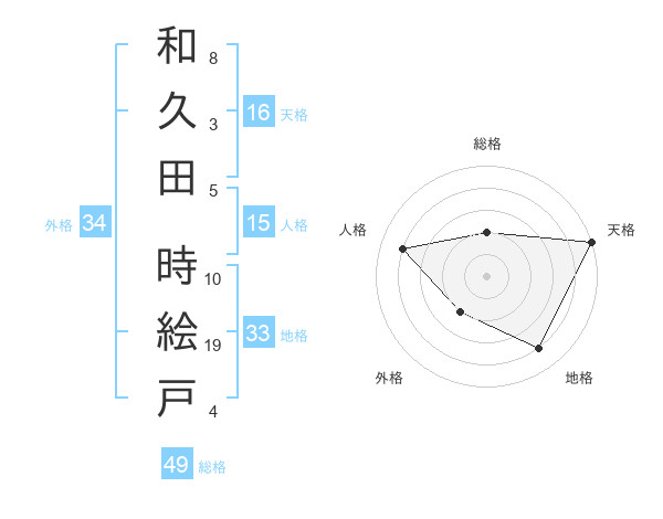 和久田 時絵戸さんを姓名の画数から五運を鑑定