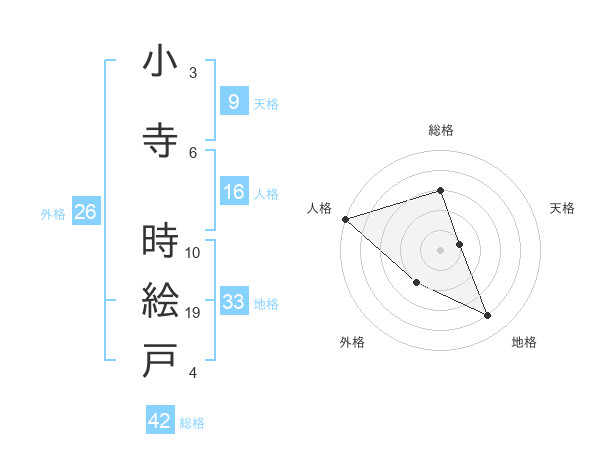 小寺 時絵戸さんの総格は42画の3点!