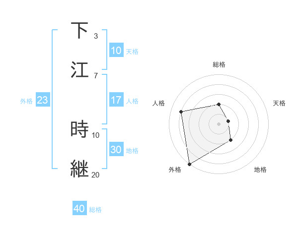 下江 時継さんの外格は23画の5点!