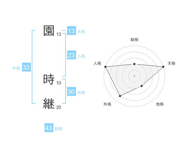 園 時継さんの天格は13画の5点!