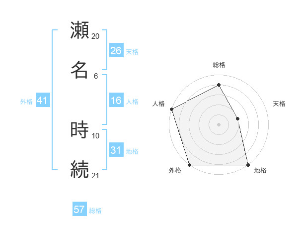瀬名 時続さんを姓名の画数から五運を鑑定