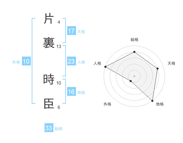 片裏 時臣さんの天格は17画の4点!