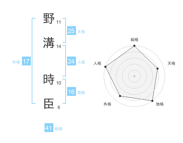 野溝 時臣さんを姓名の画数から五運を鑑定