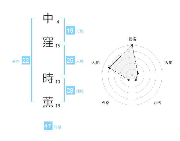 中窪 時薫さんの総格は47画の5点!