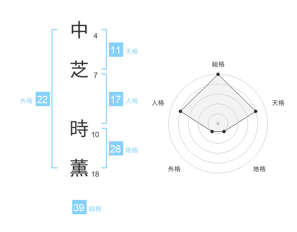 中芝 時薫さんを姓名の画数から五運を鑑定