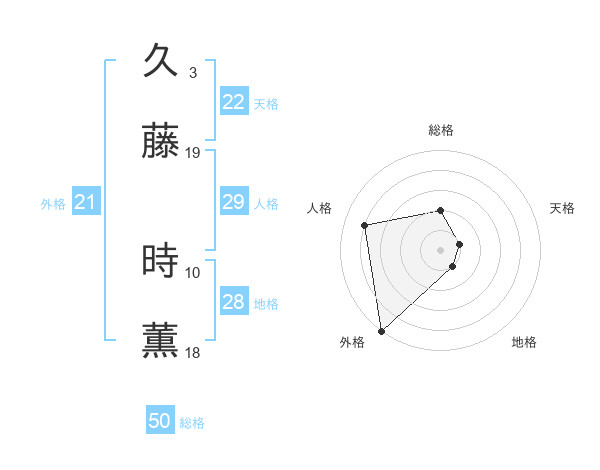 久藤 時薫さんを姓名の画数から五運を鑑定