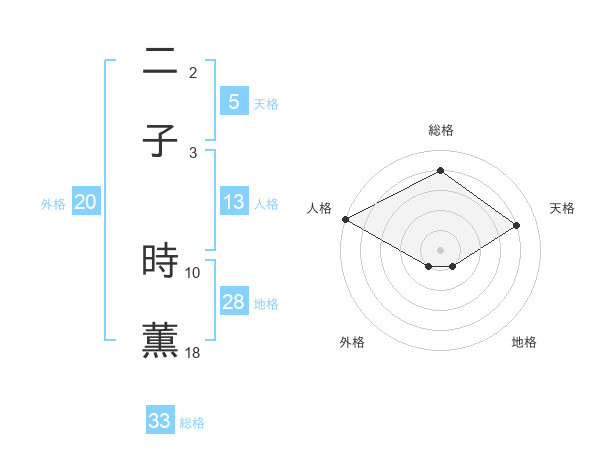 二子 時薫さんの総格は33画の4点!