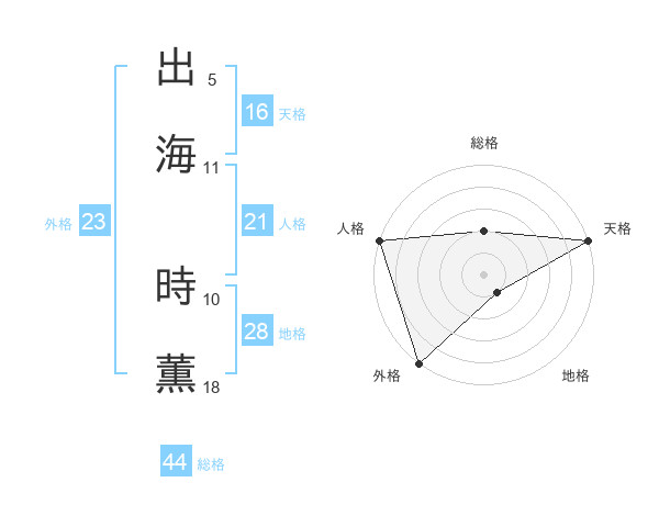 出海 時薫さんの外格は23画の5点!