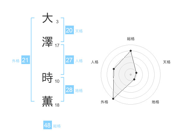 大澤 時薫さんの天格は20画の1点!