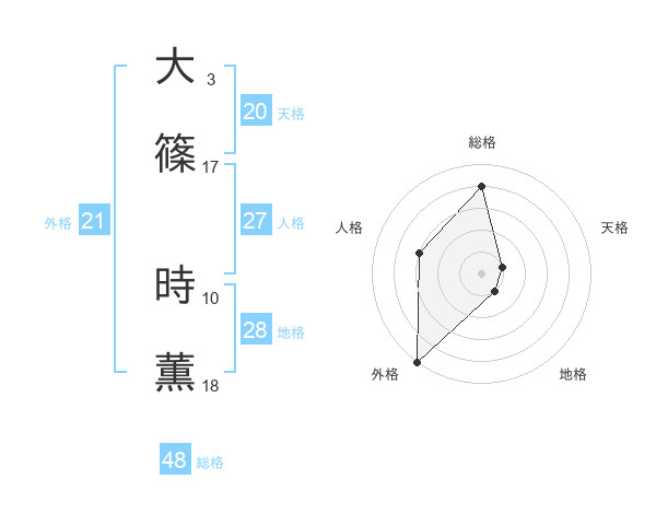大篠 時薫さんを姓名の画数から五運を鑑定