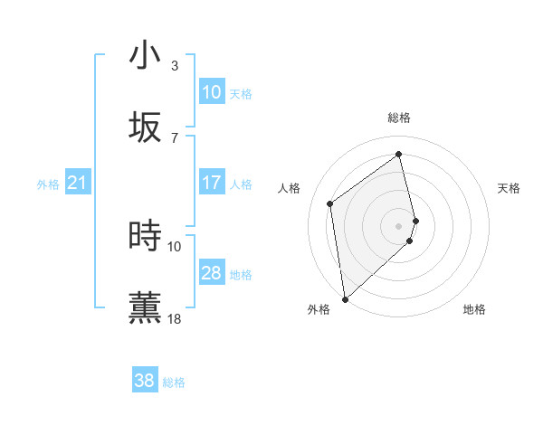 小坂 時薫さんの総格は38画の4点!