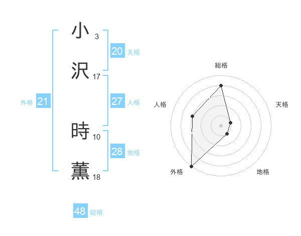小沢 時薫さんの天格は20画の1点!
