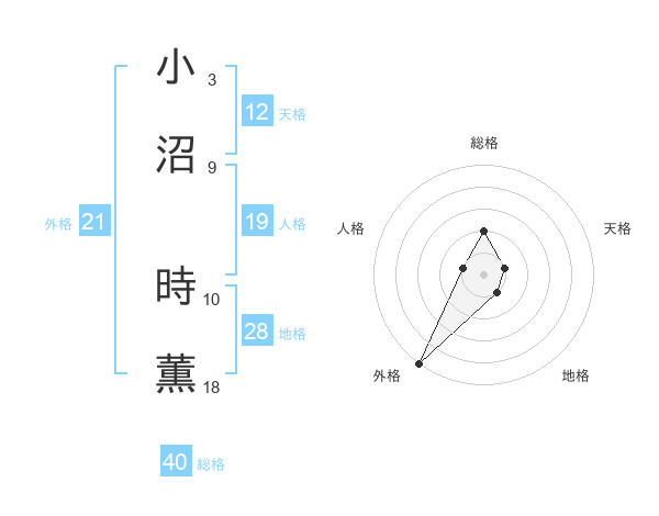小沼 時薫さんの外格は21画の5点!