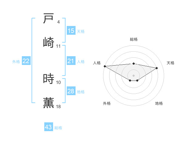 戸崎 時薫さんの地格は28画の1点!