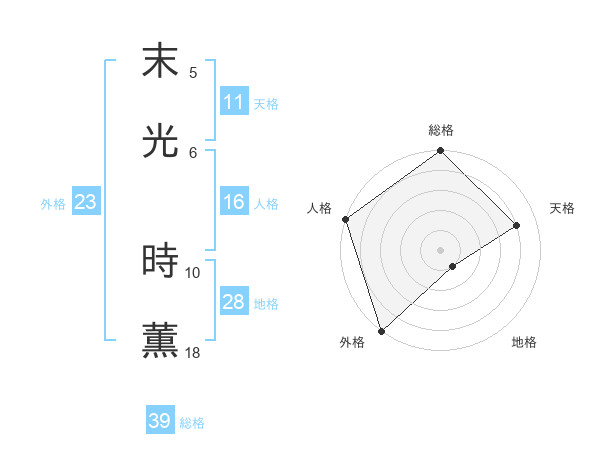 末光 時薫さんの外格は23画の5点!