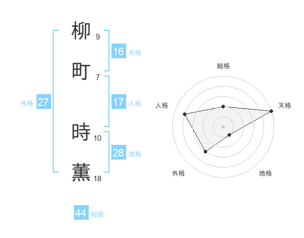 柳町 時薫さんを姓名の画数から五運を鑑定