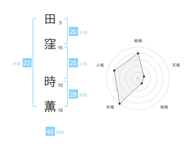 田窪 時薫さんの天格は20画の1点!