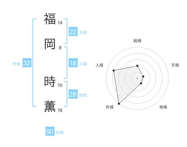 福岡 時薫さんの総格は50画の2点!