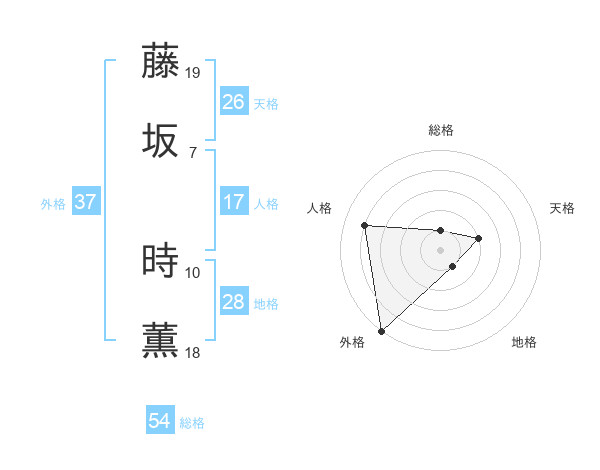 藤坂 時薫さんの外格は37画の5点!