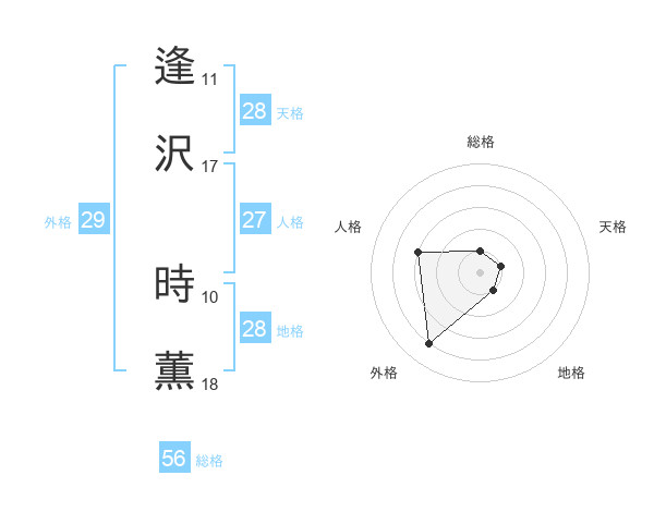 逢沢 時薫さんの外格は29画の4点!