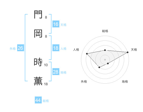 門岡 時薫さんを姓名の画数から五運を鑑定