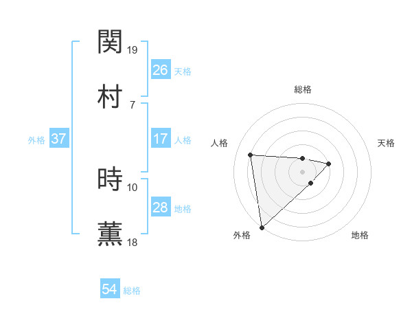 関村 時薫さんの外格は37画の5点!