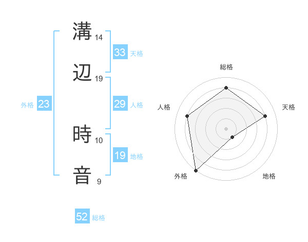 溝辺 時音さんの総格は52画の4点