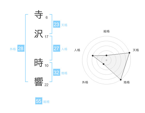 寺沢 時響さんを姓名の画数から五運を鑑定