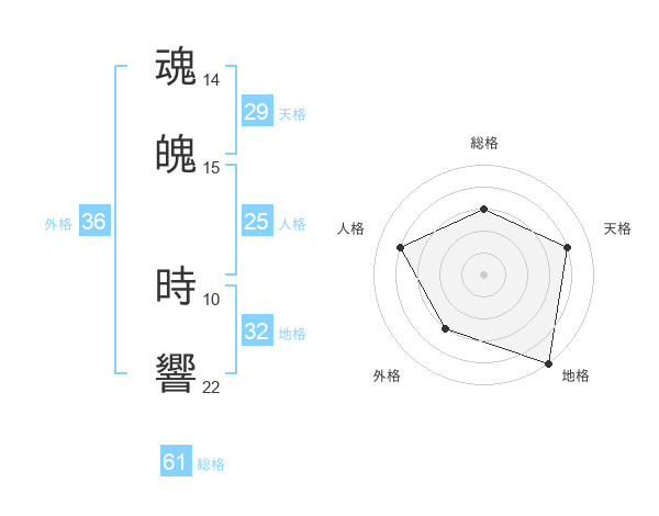 魂魄 時響さんの総格は61画の3点!