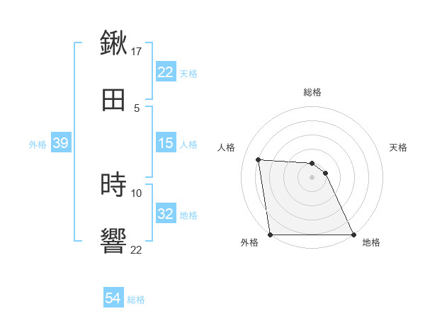 鍬田 時響さんの外格は39画の5点!