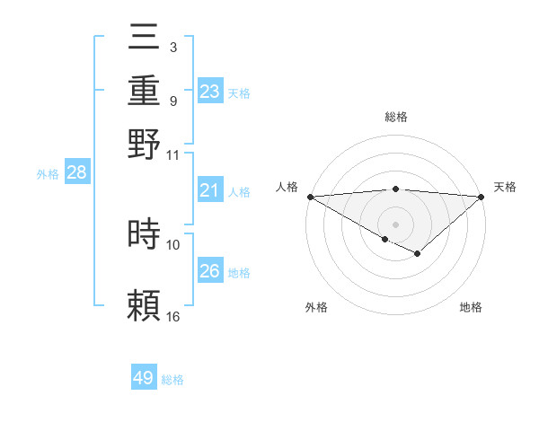 三重野 時頼さんを姓名の画数から五運を鑑定