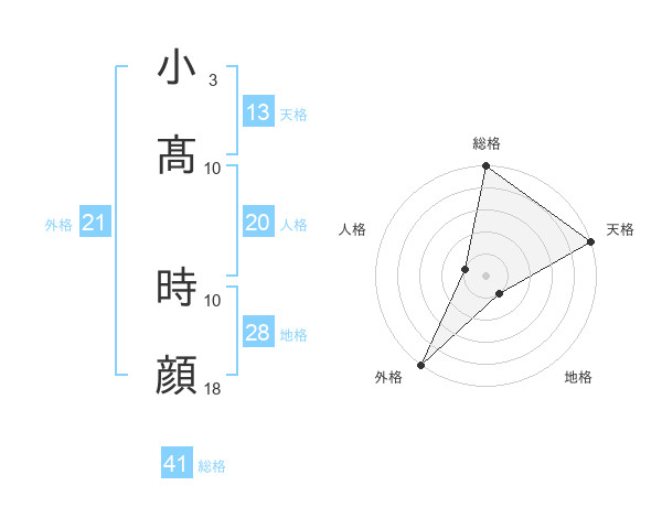 小髙 時顔さんを姓名の画数から五運を鑑定