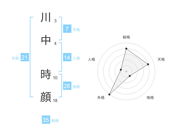 川中 時顔さんの総格は35画の4点!