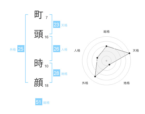 町頭 時顔さんの総格は51画の3点!