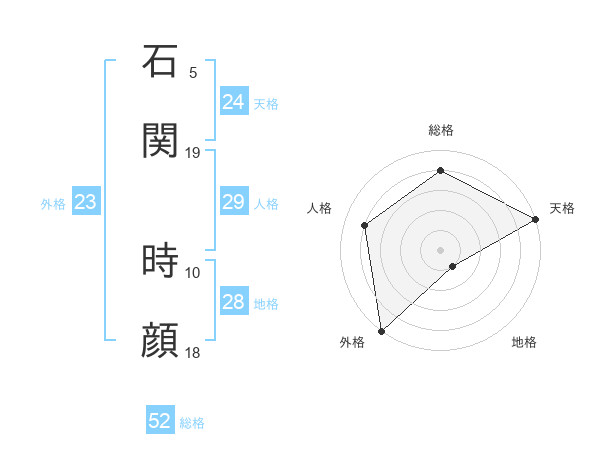 石関 時顔さんの総格は52画の4点!