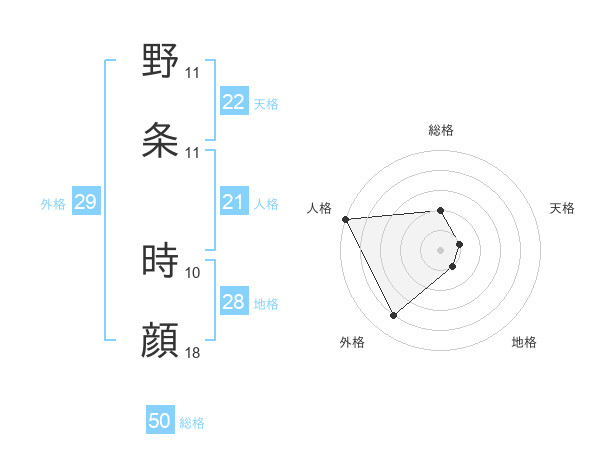 野条 時顔さんの総格は50画の2点!