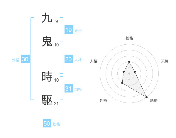 九鬼 時駆さんを姓名の画数から五運を鑑定