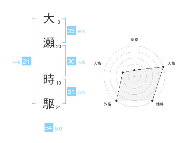 大瀬 時駆さんを姓名の画数から五運を鑑定