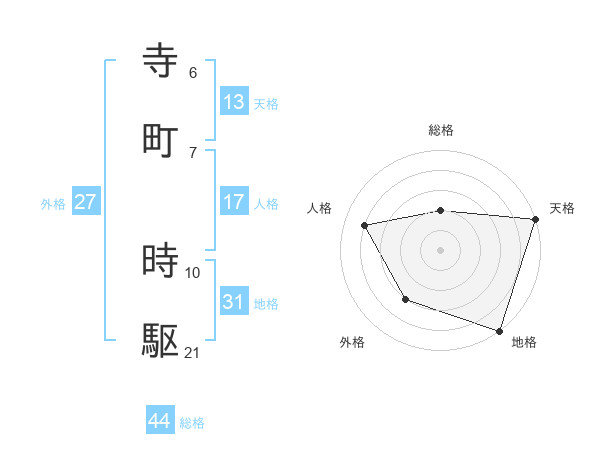 寺町 時駆さんの総格は44画の2点!