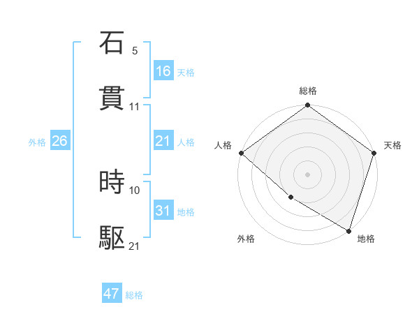 石貫 時駆さんを姓名の画数から五運を鑑定