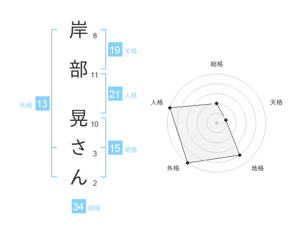 岸部 晃さんさんの外格は13画の5点!