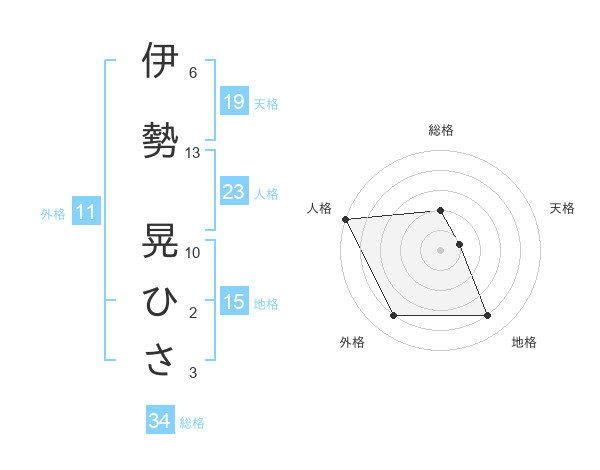 伊勢 晃ひささんを姓名の画数から五運を鑑定