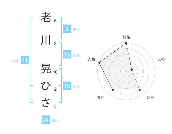 老川 晃ひささんの総格は24画の5点!