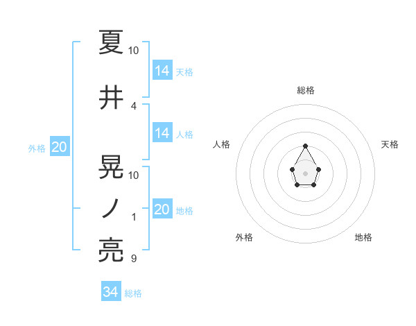 夏井 晃ノ亮さんの総格は34画の2点!