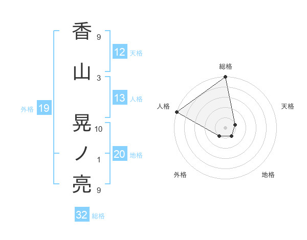 香山 晃ノ亮さんを姓名の画数から五運を鑑定