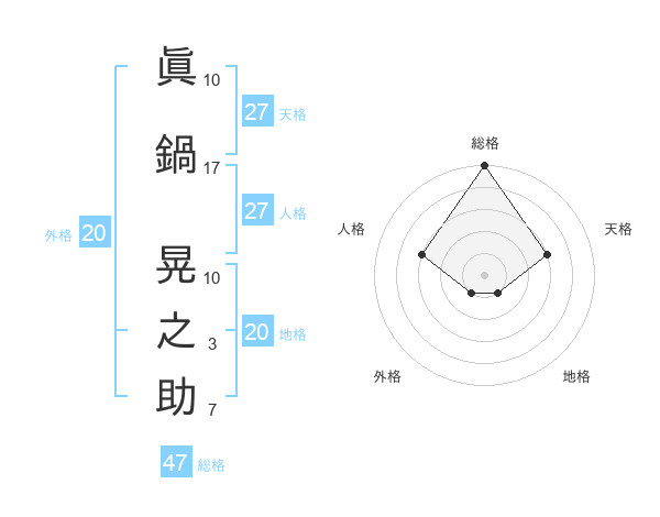 眞鍋 晃之助さんの名前の鑑定結果は!