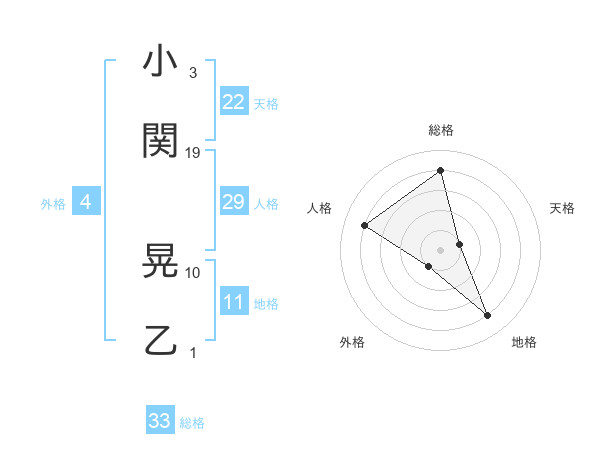 小関 晃乙さんを姓名の画数から五運を鑑定