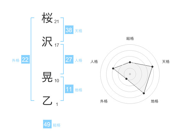桜沢 晃乙さんの天格は38画の4点!