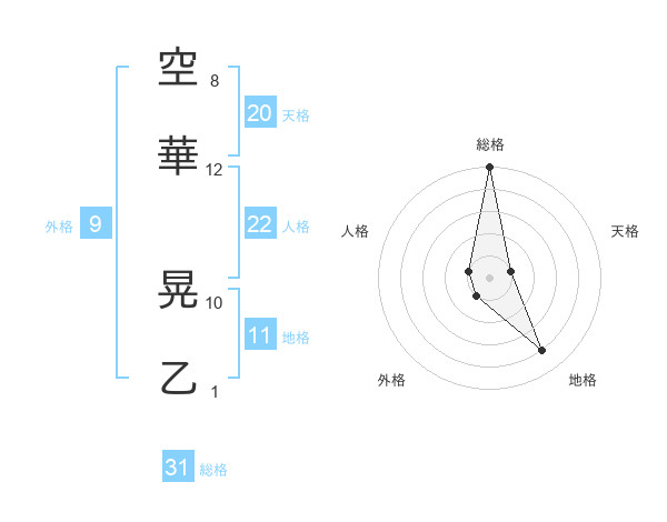 空華 晃乙さんを姓名の画数から五運を鑑定