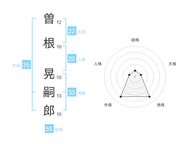 曽根 晃嗣郎さんを姓名の画数から五運を鑑定